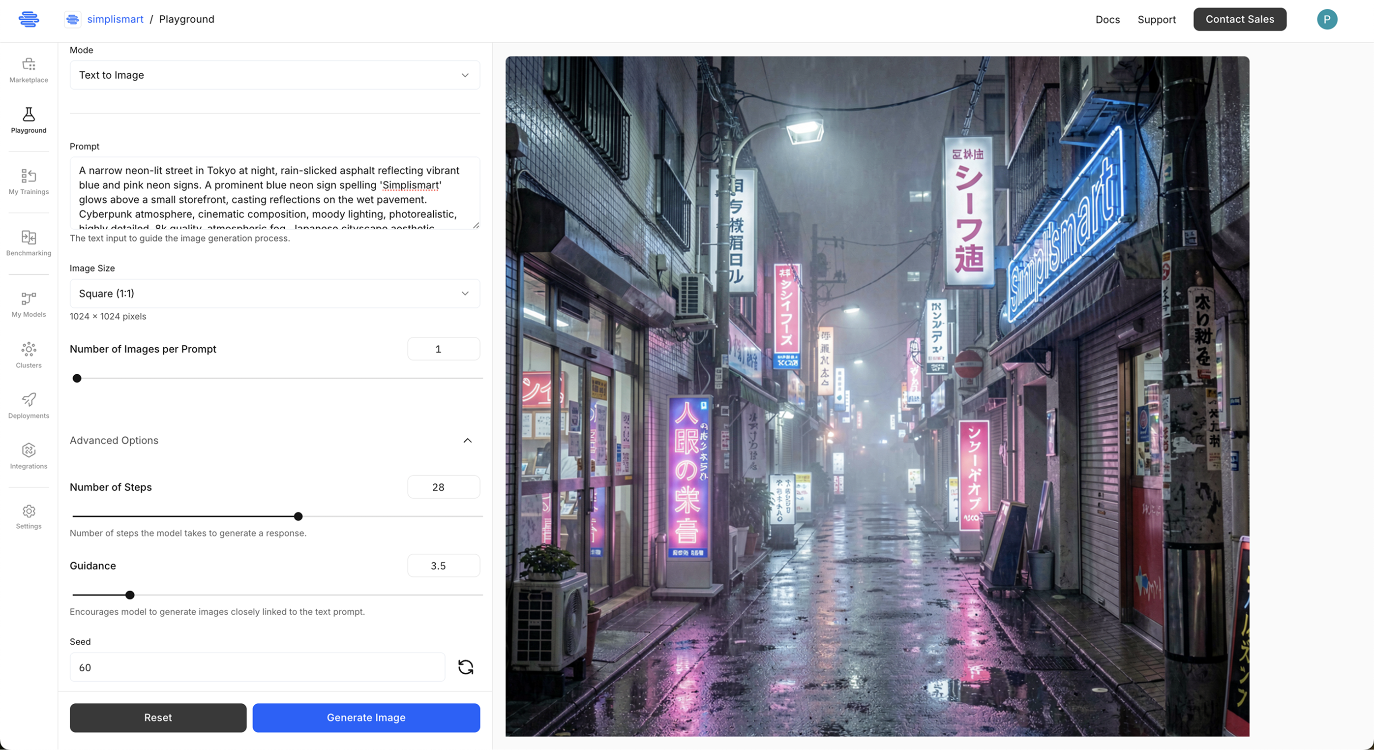 Try FLUX.2 [klein] in the Simplismart Playground, no code or setup. Ideal for prompt testing and quick demos.