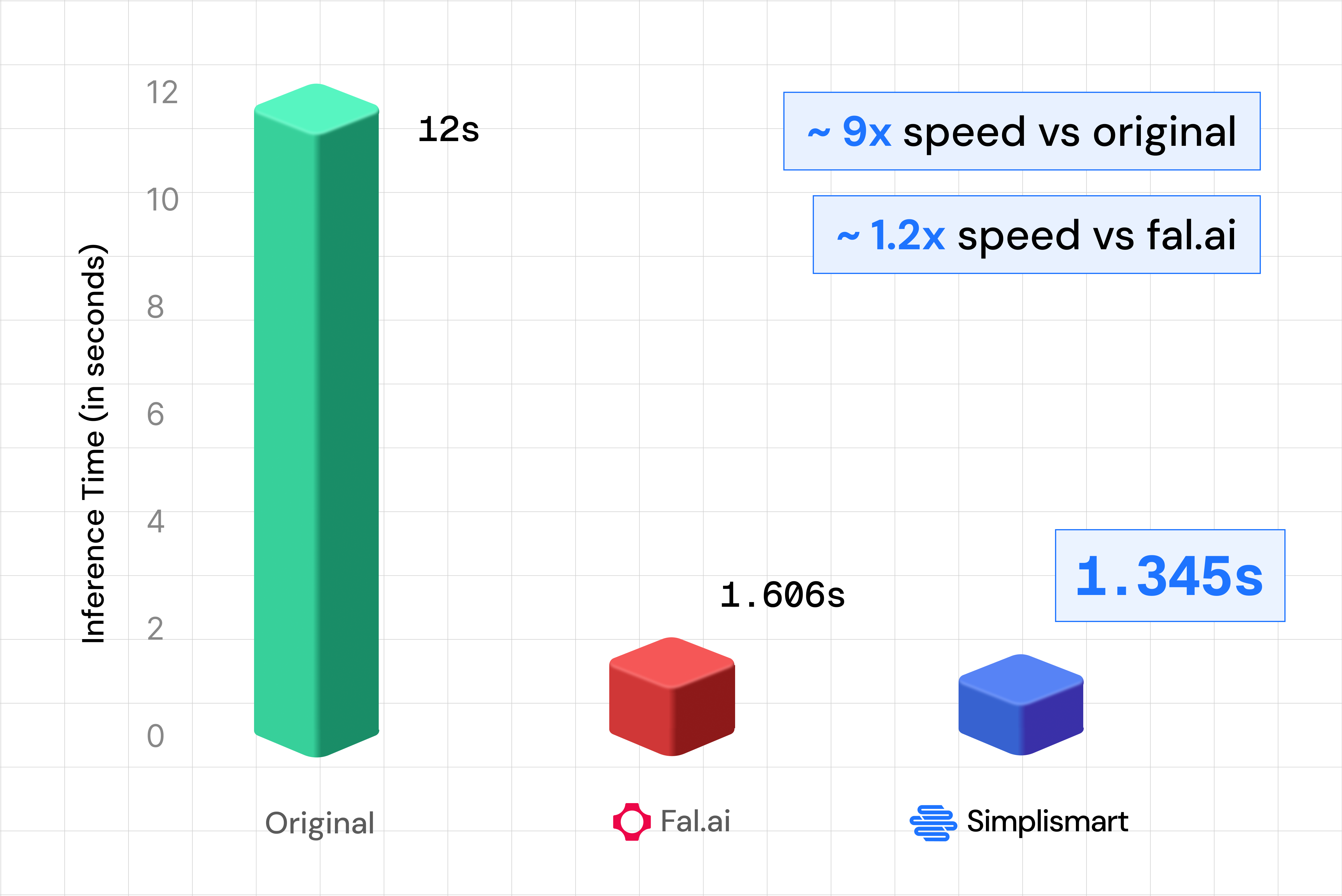 So the same model that used to take 12 seconds per image now runs in about 1.3 seconds on Simplismart, fast enough for interactive and near real-time use cases.