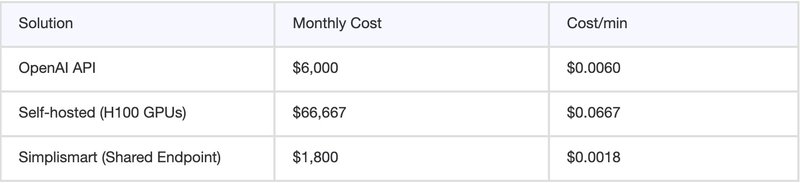 Cost Comparison at Scale: Self-deploy whisper vs Simplismart